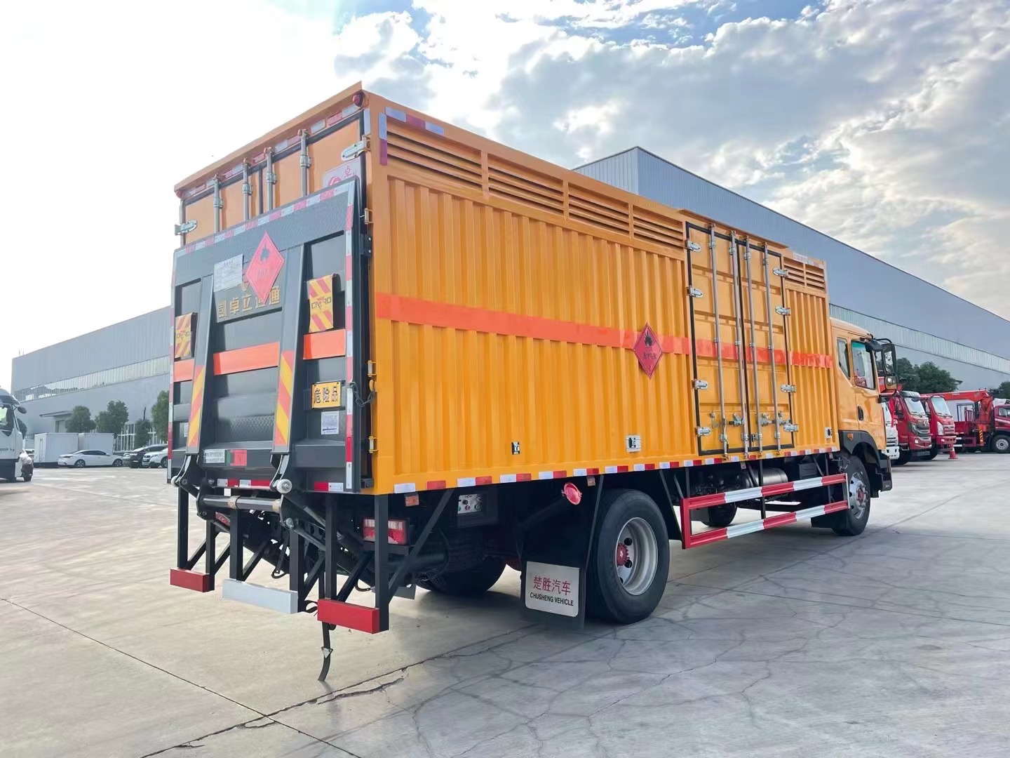 1,復合板工藝:嚴格按照公告尺寸制作。外板采用優質烤漆板(顏色可選:白,灰,檸檬黃)帶百葉窗,內飾為導電性能良好的鋁平板有透氣孔,矩形骨架結構內部填充防火阻燃材料,復合加鉚合工藝。廂體四周鋁合金包邊及包角,車廂底板鋪設防靜電膠皮,廂體前臉50公分高鋪設防靜電膠皮。后部設置對開門,右側一組雙開門,廂體內部兩側安裝捆綁貨物的臥環。廂體內部安裝煙霧報**器,門上安裝防盜報**器。車廂一周粘貼橙色反光帶,箱體粘貼菱形標志牌,安全告示牌,危險品牌,箱體安裝示廓燈(前白后紅),拖地靜電帶。